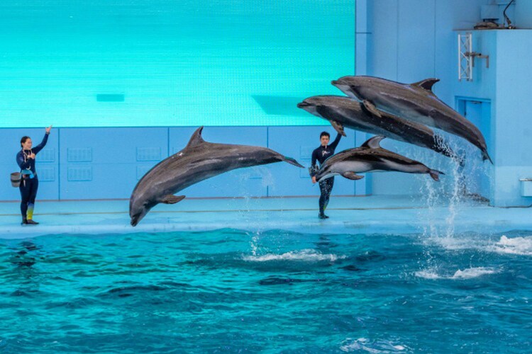 イルカたちのダイナミックなジャンプや生きものたちのパフォーマンスをウィンターソングとともにお届けします。