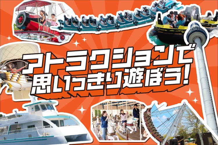 絶叫!癒し!さまざまな遊びが盛りだくさん。チケット「ワンデーパス」や「プレジャーランドパス」ではアトラクションが乗り放題でお得!