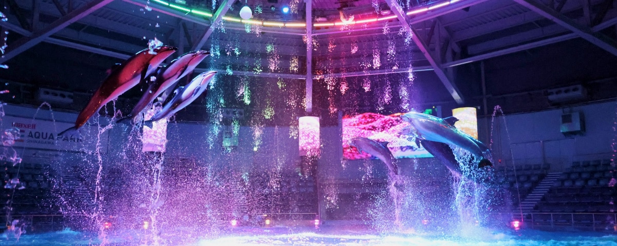 会場を360°彩る光・音楽・水のアートとイルカたちが共演。四季折々の世界観に浸る【超・没入型】のパフォーマンスをお届けします。